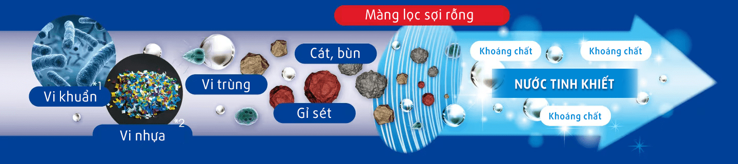 * Kết quả thử nghiệm cho thấy thiết bị lọc loại bỏ 99,99% vi khuẩn, đáp ứng Tiêu chuẩn của Hiệp hội Máy lọc nước Nhật Bản (JWPA), "Tiêu chuẩn B.200 về Hiệu suất Loại bỏ vi khuẩn của Máy lọc Nước (Kiểm tra Hiệu suất Loại bỏ Vi khuẩn)".
