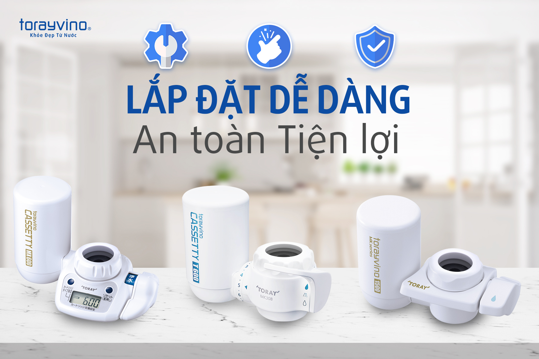 Ưu điểm nổi bật của các thiết bị lọc nước Torayvino là thiết kế nhỏ gọn, thông minh, sử dụng 1 bộ lọc duy nhất tích hợp nhiều chế độ cấp phát nước và chức năng chuyên dụng. Nhờ vậy, cho dù không phải là người am hiểu kỹ thuật, bạn vẫn có thể tự lắp đặt và thay thế bộ lọc tại nhà với hầu hết các dòng sản phẩm mà không cần dùng đến những dụng cụ phức tạp.