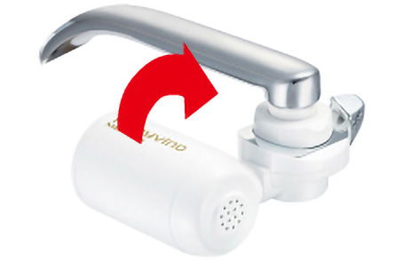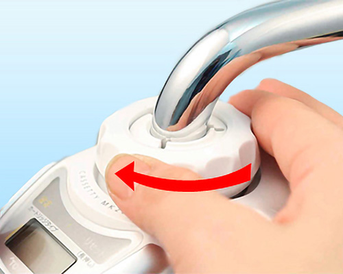 Bước 4: Sau khi xiết chặt Đầu Nối, kéo Nắp Van theo chiều kim đồng hồ để khóa máy máy lọc vào vòi nước.