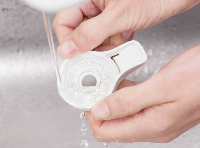 Bước 2: Đưa Nắp Van vào vòi nước đầu tiên.