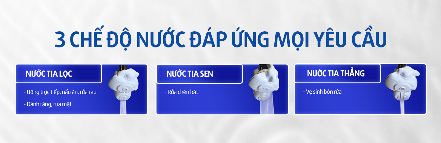 Lọc nước 3 chế độ, tiện lợi và đáp ứng được tất cả yêu cầu sử dụng nước.