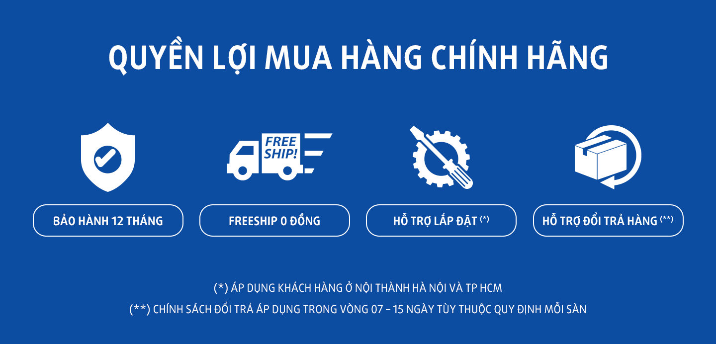 - Bảo hành thân máy 12 tháng và phiếu bảo hành