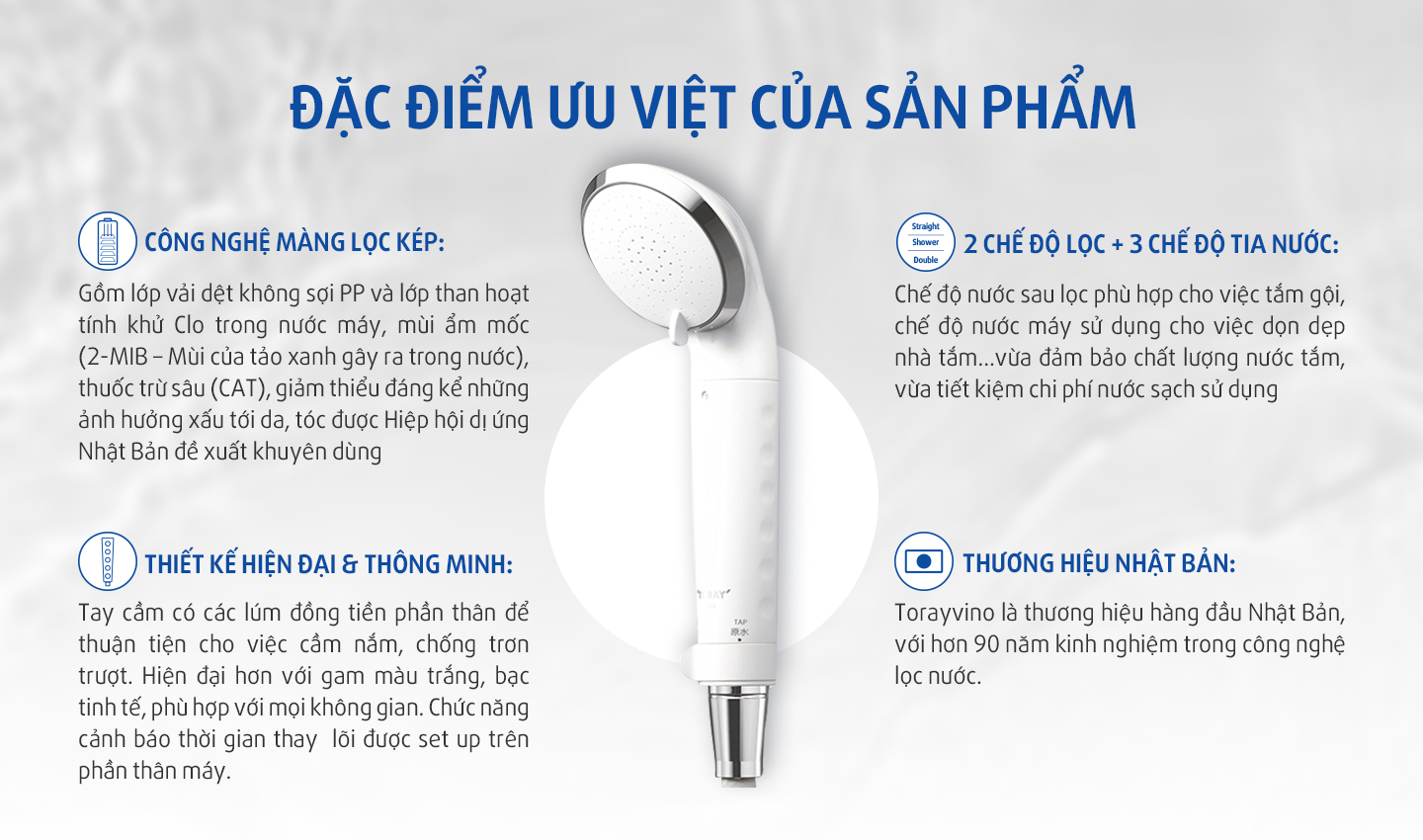 Vòi sen tắm khứ Clo của Torayvino sở hữu nhiều đặc điểm vượt trội
