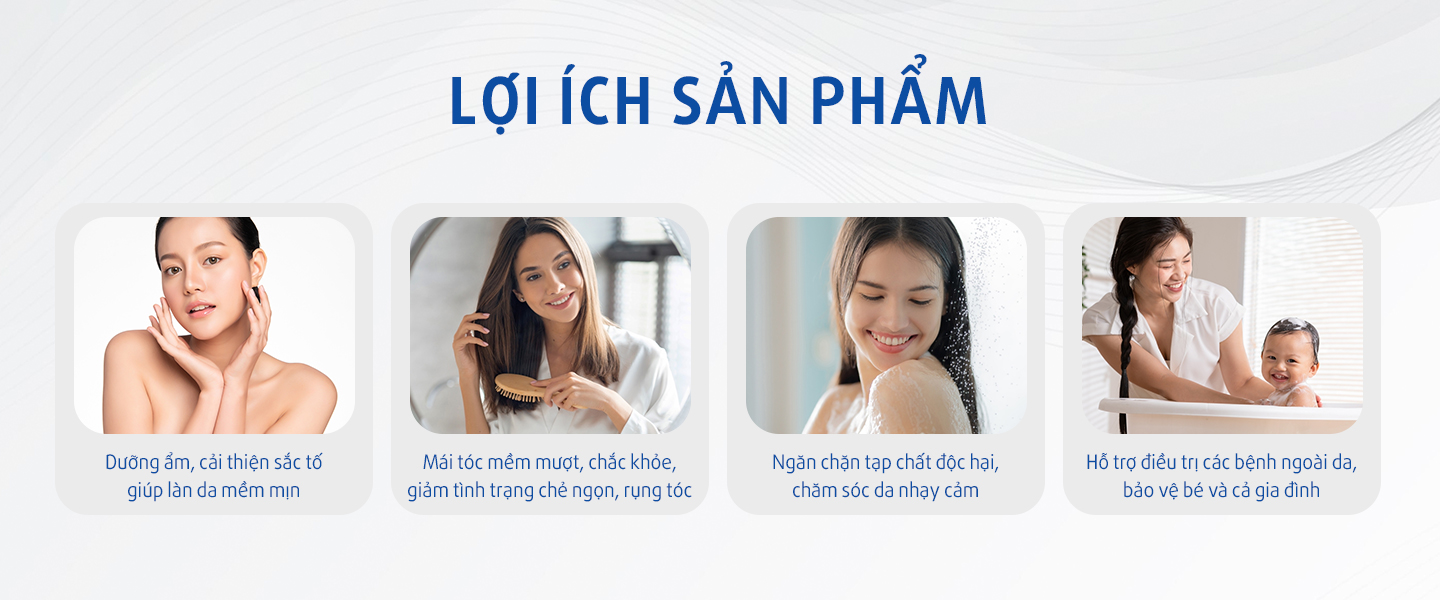 Nước máy chứa nhiều Clo dư, kim loại nặng…làm oxy hóa lipid và protein trên tóc/da đầu, có thể gây ra tình trạng chẻ ngọn, gãy tóc, gàu, cảm giác ngứa, và dễ rụng tóc.