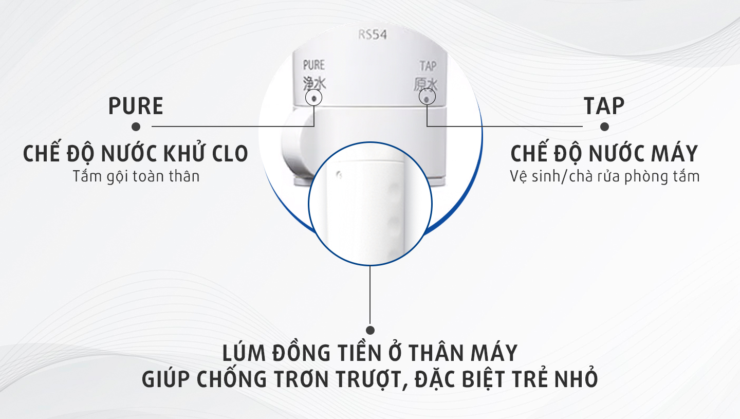 - Người dùng có thể chuyển đổi sang dùng nước máy khi vệ sinh bồn hoặc phòng tắm, sang nước tinh khiết khi gội đầu và cơ thể. Đây là một chức năng tiện lợi cho phép bạn sử dụng vòi hoa sen một cách hiệu quả mà không lãng phí công suất lọc của lõi.